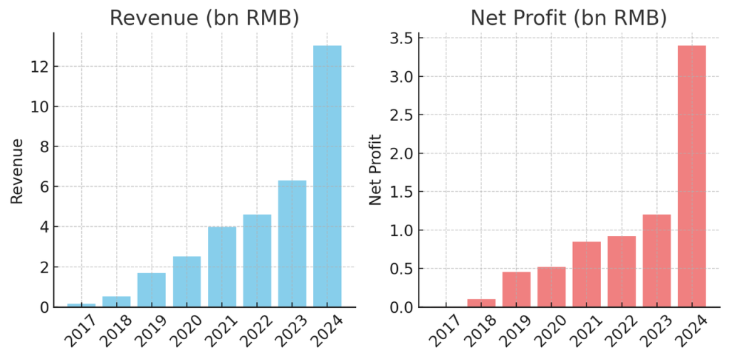 按地域看,中国大陆仍是公司最大市场,但海外业务正成为强劲增长引擎。2023年海外收入占比已达16.9%,较2019年的3%有大幅提升。2024年海外业务继续高歌猛进,全年海外营收同比暴增约375%。